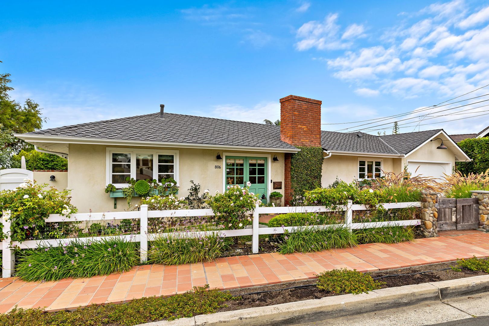 enchanting front yard welcomes you with a vibrant array of flowers,