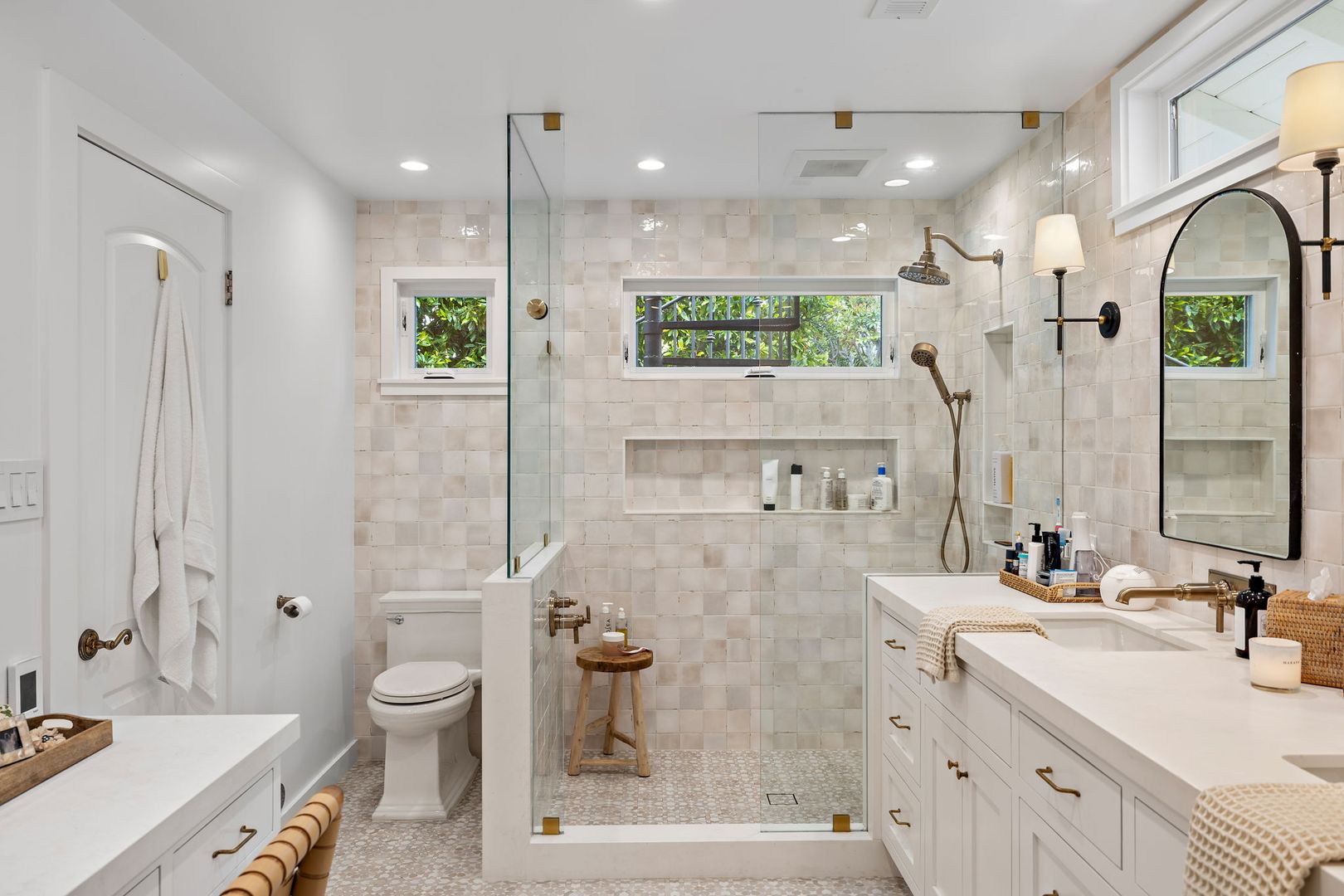 seamlessly into the updated, dreamy kitchen. The luxurious primary suite
