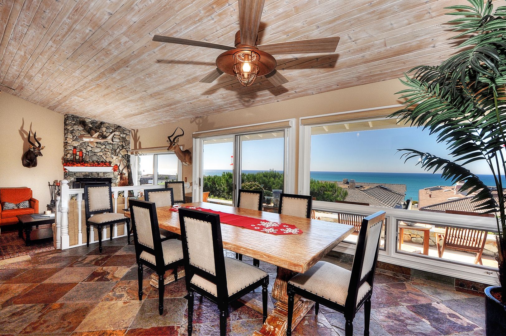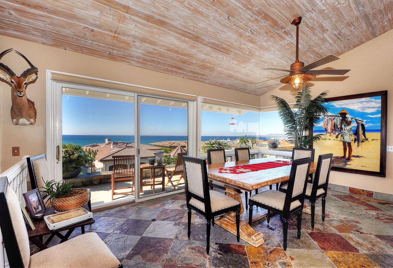 Live the dream in Cyprus Shore in this charming four bedroom house with panoramic ocean views! Sit and enjoy sunsets over Catalina from the back patio, dining room, living room, and kitchen. The rooftop deck overlooking the Pacific Ocean is the perfect place to relax and feel like you are on vacation with no one around. The gourmet kitchen features top of the line appliances and a kitchen island with butcher block. The cozy living room has a grand stone fireplace and sliding glass doors to the back patio. The front courtyard is great for entertaining with outdoor heating and gas fireplace. Two minute walk to the private beaches at Cottons and North Gate. The community offers private swimming pools, park, clubhouses, and tennis courts. Walk or ride your bike to world class surf breaks at Trestles in 10 minutes. Easy freeway access and close to downtown San Clemente.