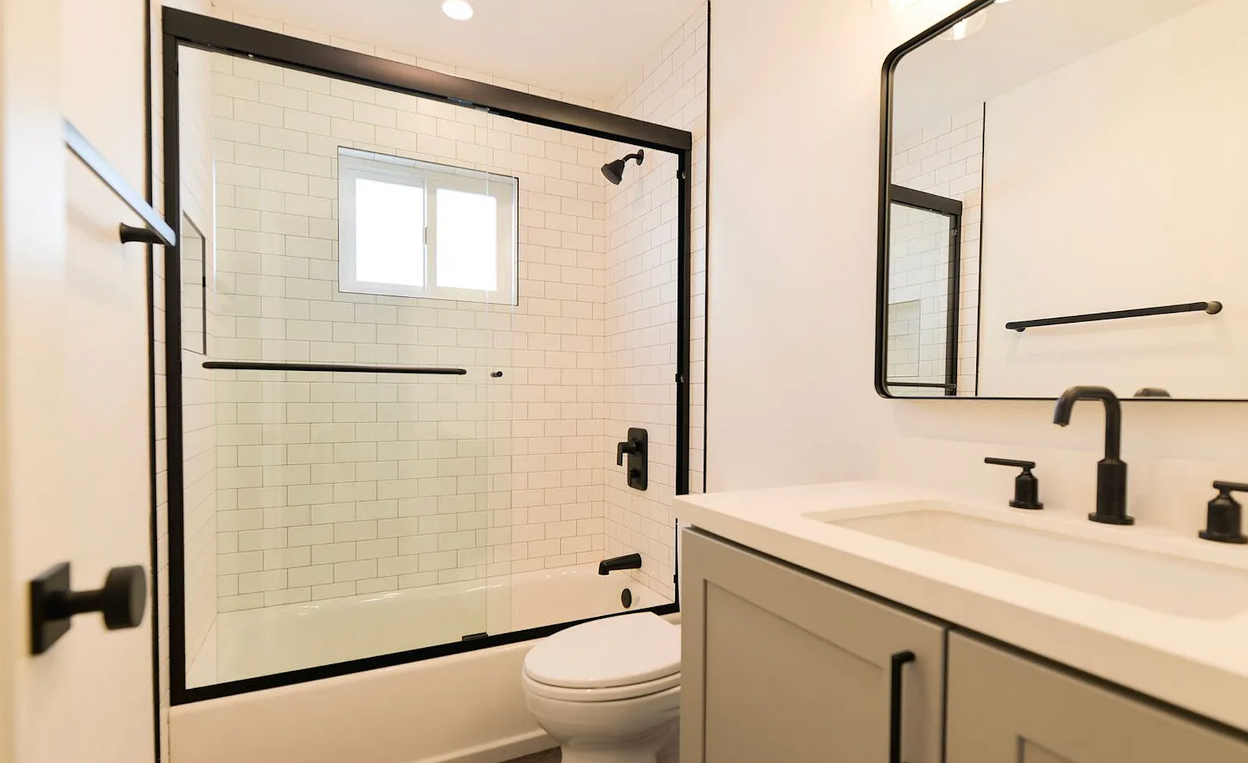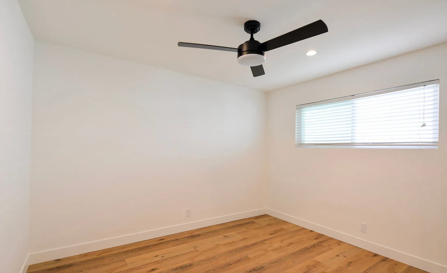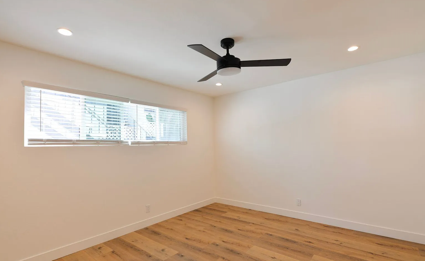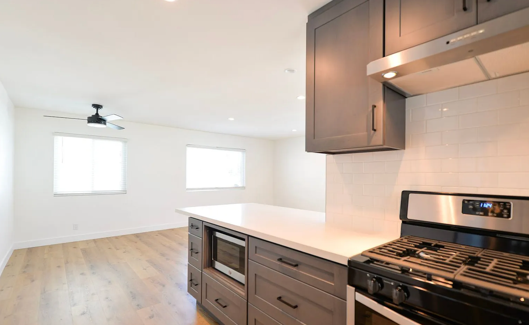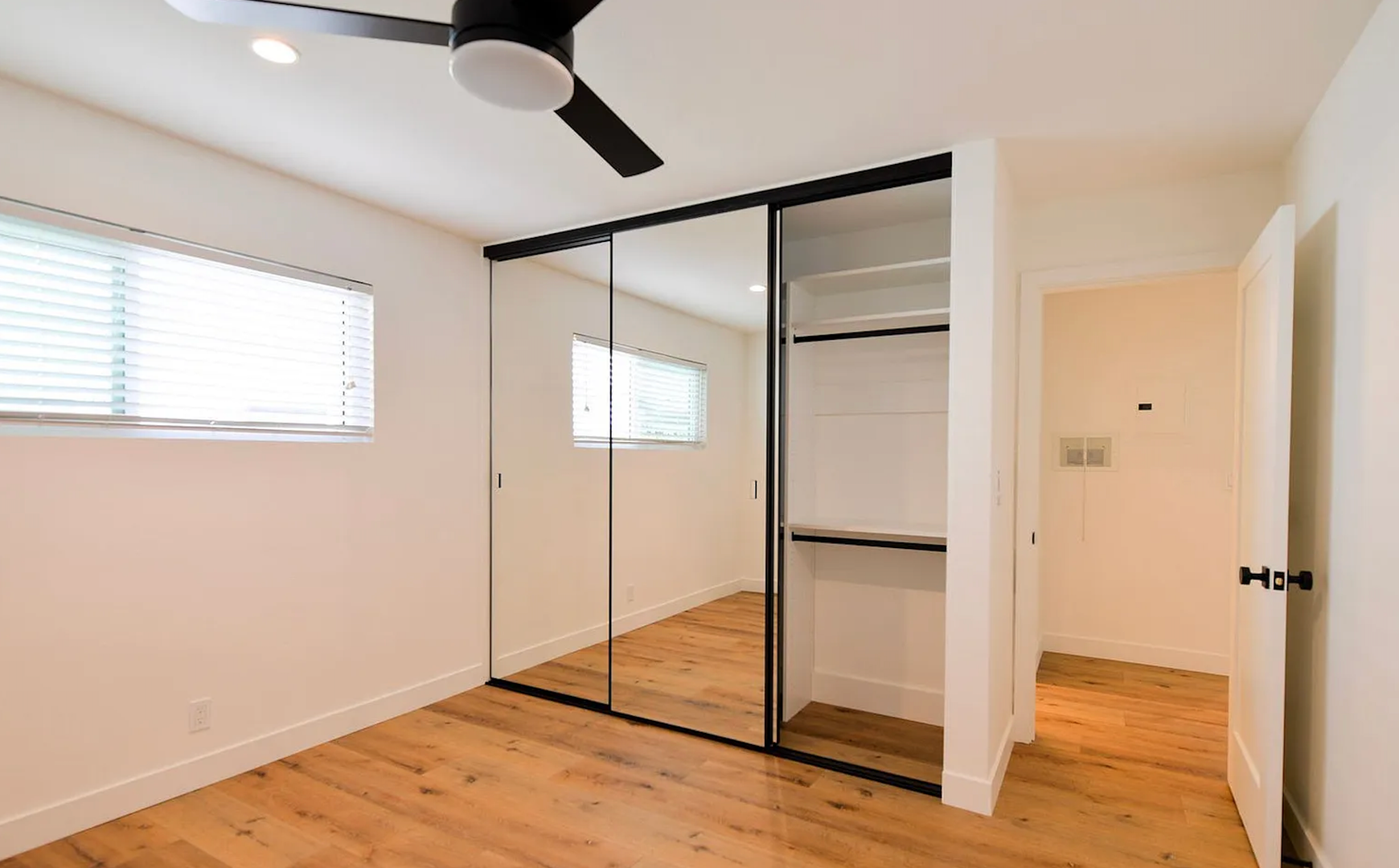 This stylish two bedroom sits at the front of a fully remodeled tri-plex, just a 5-minute walk to the San Clemente Beach Trail. Inside, the open layout features a Dutch front door, shaker cabinets, quartz counters, subway tile backsplash, and a breakfast bar. The kitchen comes fully equipped with all major appliances plus a stacked washer and dryer for easy move-in. The bathroom includes a full tub, glass shower doors, and a long vanity with great storage. You'll also enjoy double-pane windows, vinyl flooring throughout, black hardware, mirrored closet doors, and multiple ceiling fans. Parking includes a one-car garage with an automatic door and an additional driveway space.