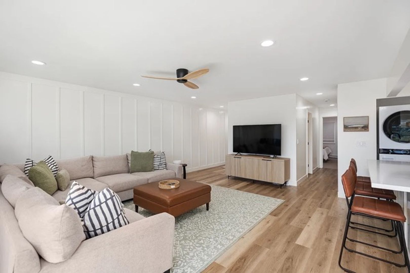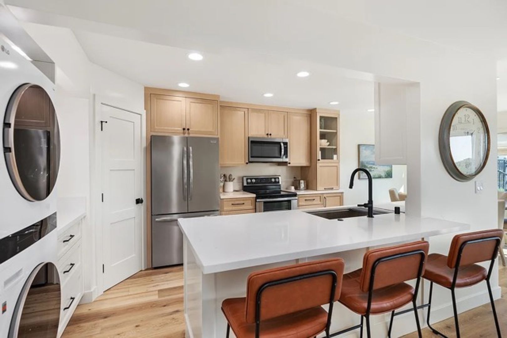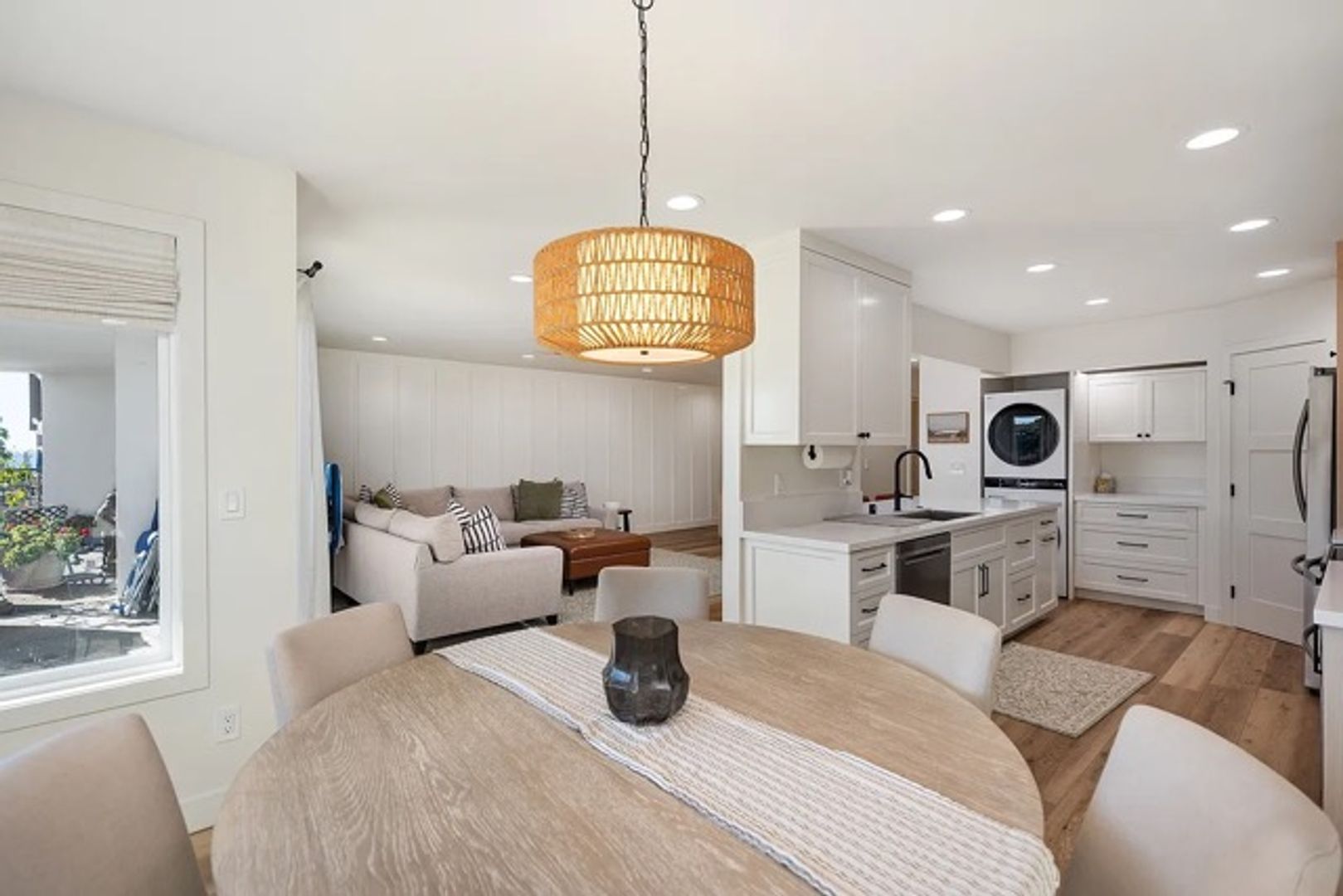 This beautifully fully furnished 2-bedroom, 2-bathroom coastal rental offers ocean views and a prime location just a short walk from the beach. Featuring an open-concept living space with a modern kitchen, stainless steel appliances, and a spacious dining area, this home is designed for both comfort and style. Relax in the inviting living room that opens to a large private patio, perfect for enjoying sunsets and sea breezes. With in-unit laundry, tasteful furnishings, and a bright, airy design, this short-term rental is the perfect seaside escape for those seeking convenience, relaxation, and coastal charm.