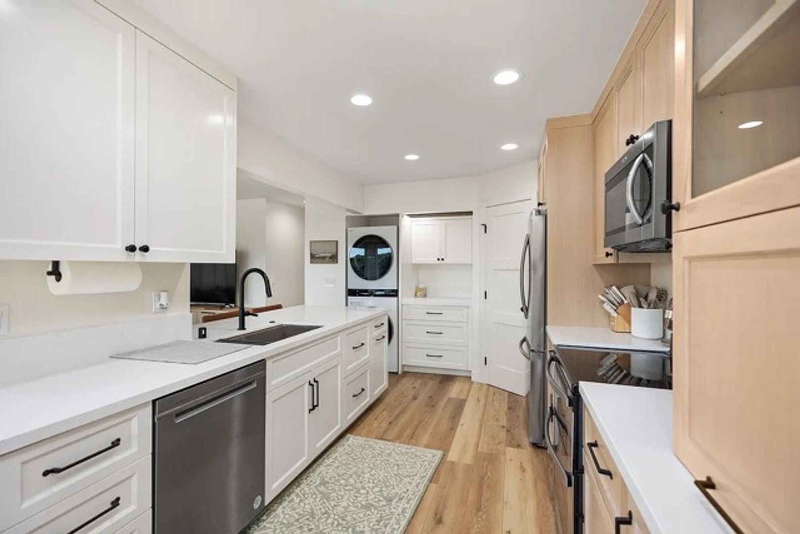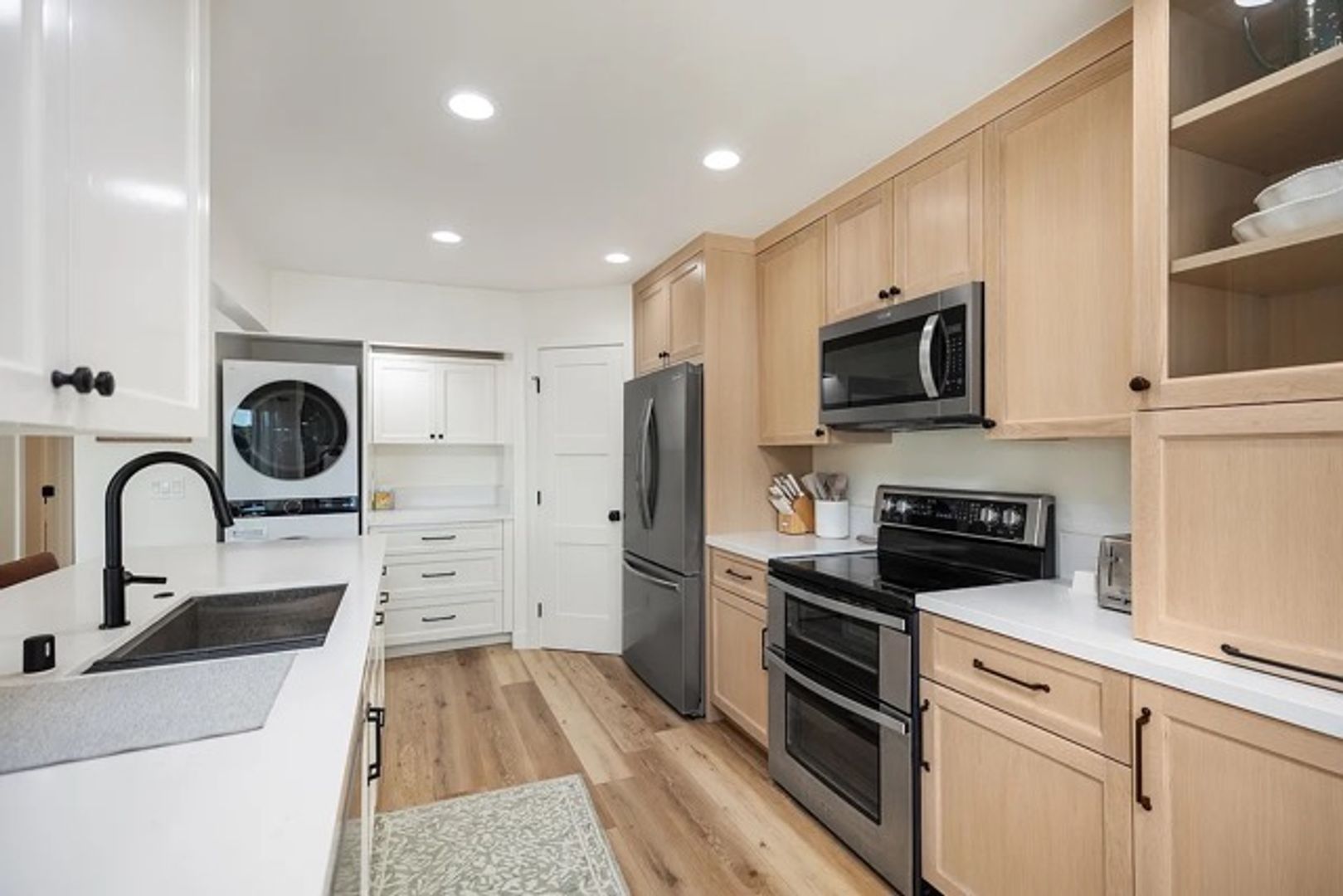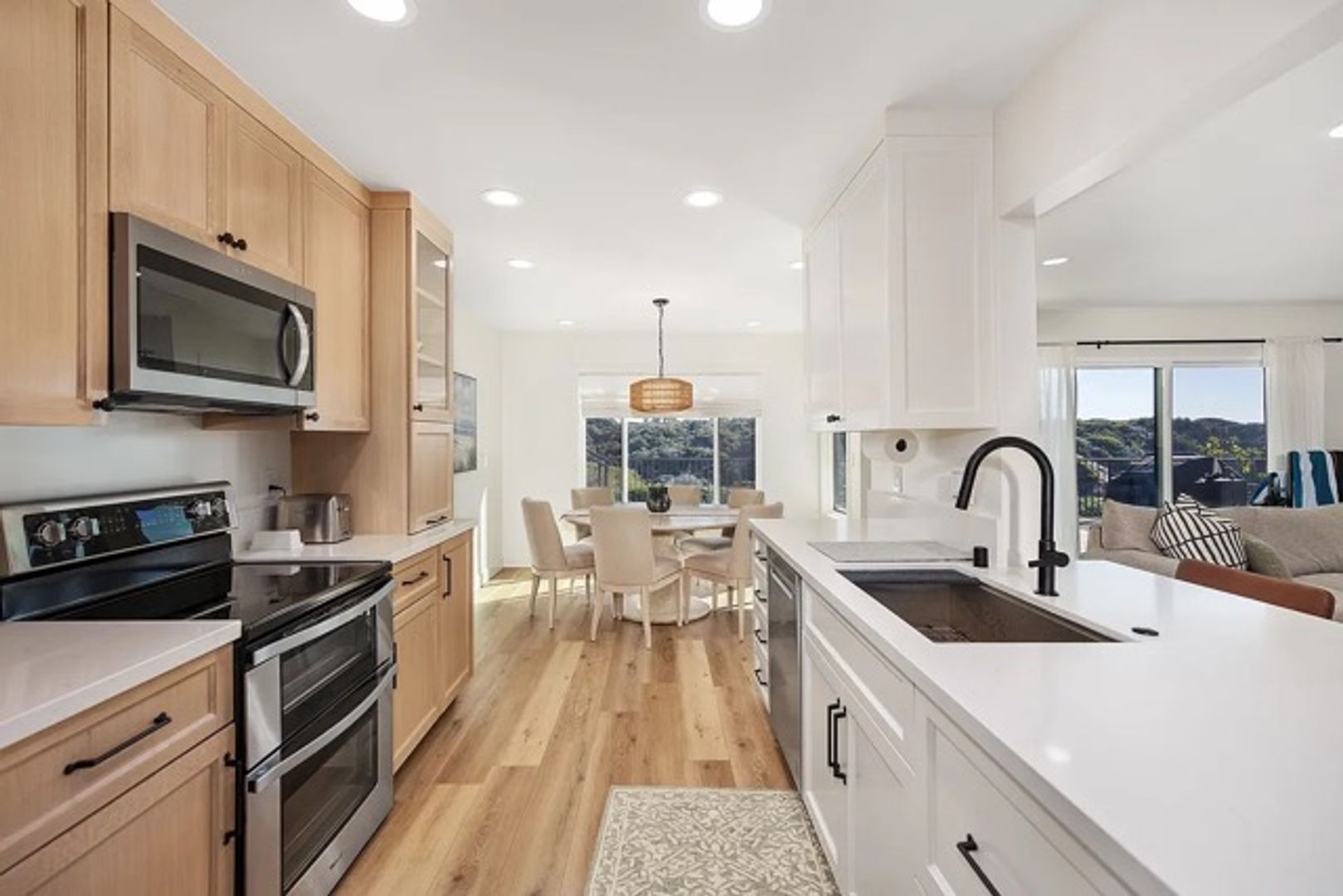 This beautifully fully furnished 2-bedroom, 2-bathroom coastal rental offers ocean views and a prime location just a short walk from the beach. Featuring an open-concept living space with a modern kitchen, stainless steel appliances, and a spacious dining area, this home is designed for both comfort and style. Relax in the inviting living room that opens to a large private patio, perfect for enjoying sunsets and sea breezes. With in-unit laundry, tasteful furnishings, and a bright, airy design, this short-term rental is the perfect seaside escape for those seeking convenience, relaxation, and coastal charm.