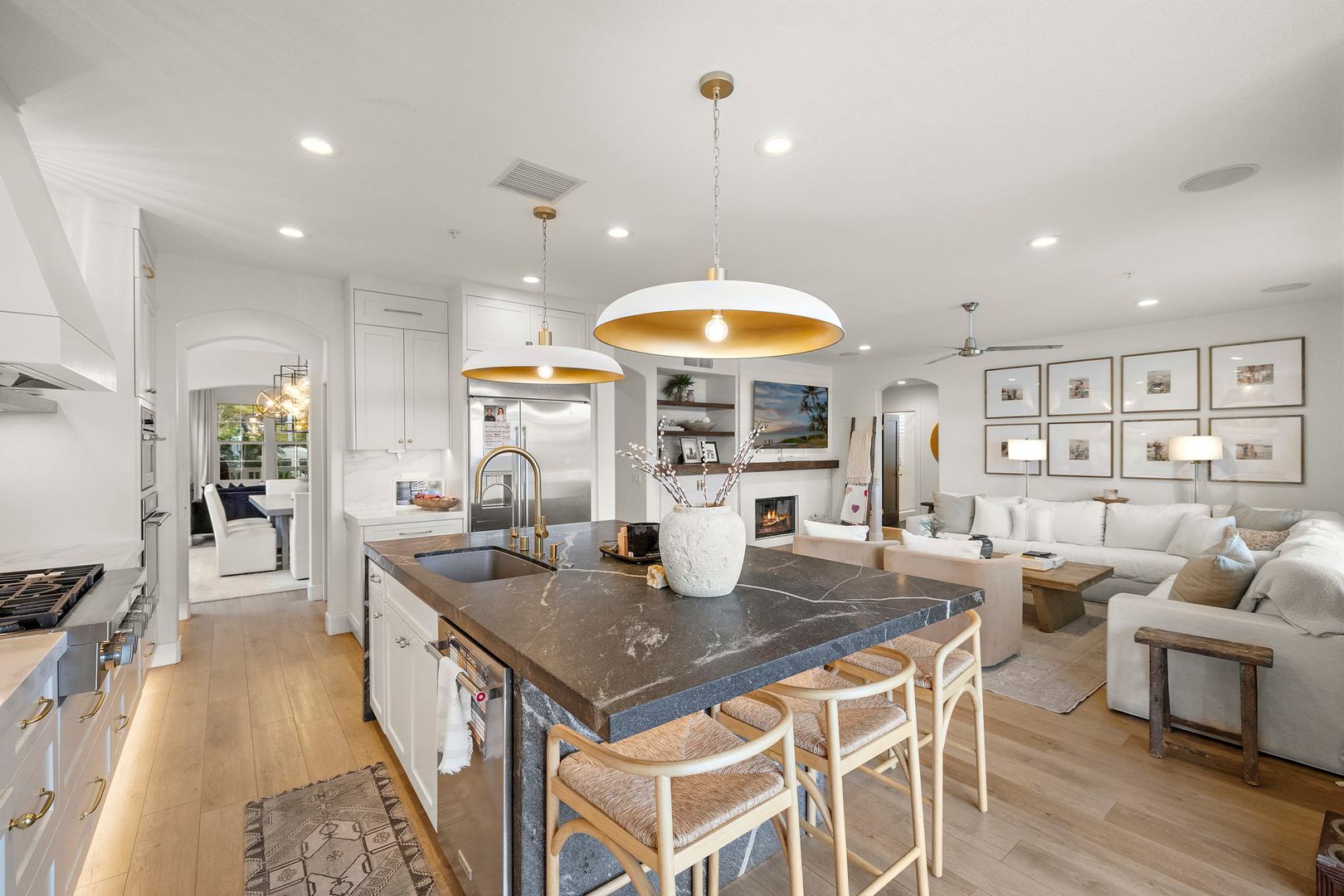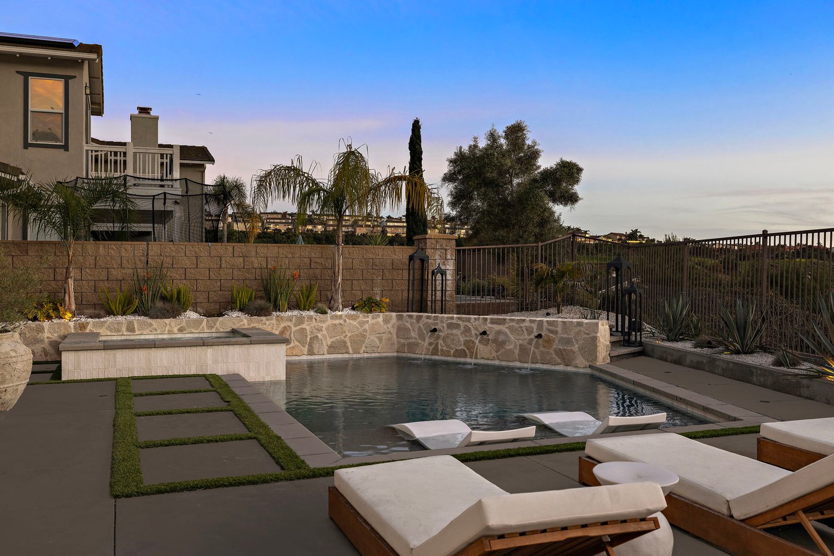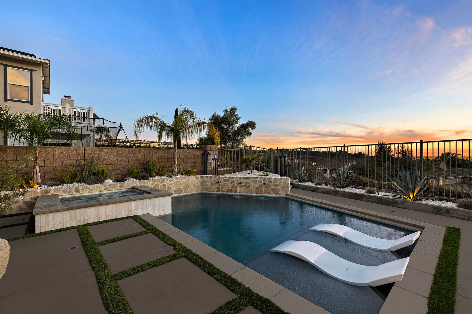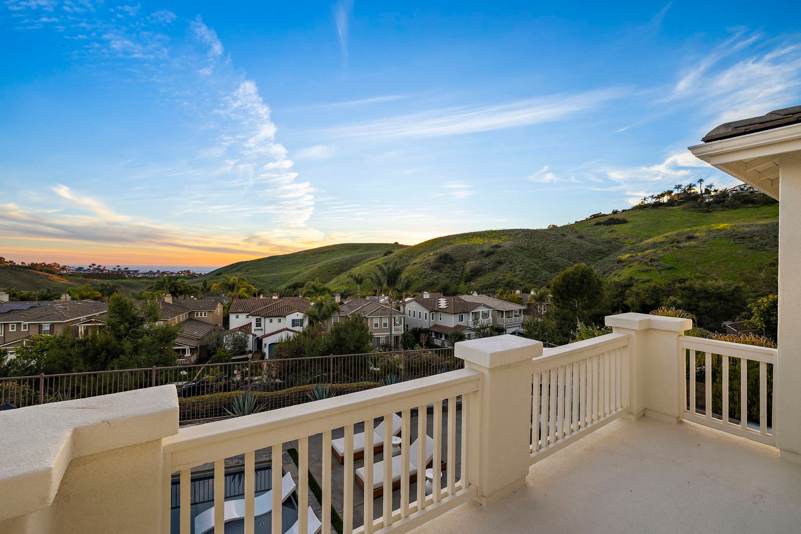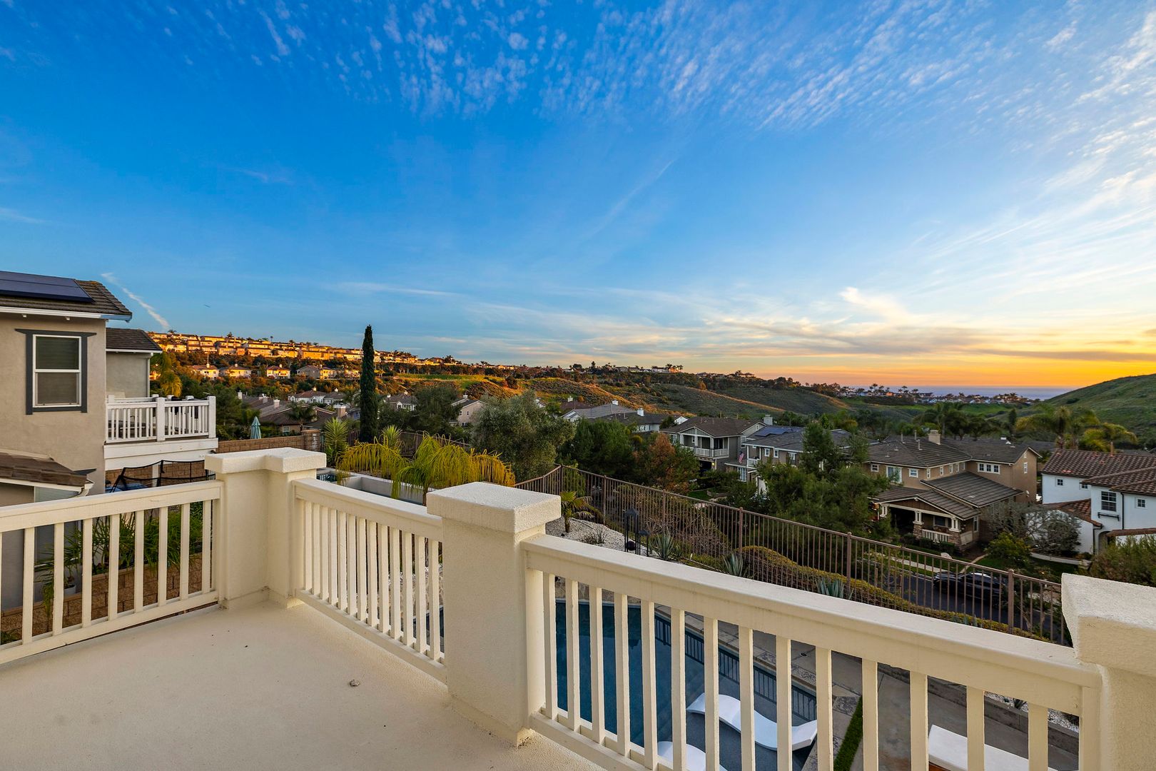 Nestled on a quiet cul-de-sac along a rare single-loaded street, this highly upgraded luxury residence captures sweeping ocean and mountain views in the prestigious gated enclave of Reserve West within Forester Ranch. Offering five bedrooms, a three-car garage, and exceptional indoor-outdoor living, this home truly has it all. The light-filled, beautifully updated kitchen is the heart of the home, thoughtfully designed with premium finishes and an open flow ideal for both daily living and entertaining. Expansive bi-folding doors open completely to the backyard, creating a seamless transition between interior and exterior spaces while framing breathtaking ocean and mountain views. Step outside to your private resort-style backyard overlooking the coastline and rolling hills. Designed for unforgettable gatherings, the outdoor space features a sparkling in-ground pool and spa, outdoor fireplace, built-in BBQ area, trampoline, and multiple lounge areas to relax and take in the panoramic scenery. A convenient first-floor bedroom or office provides flexibility for guests, multi-generational living, or remote work. Upstairs, the spacious primary suite offers a true retreat with custom built-ins, tranquil views, and a luxurious primary bathroom complete with a jacuzzi soaking tub and oversized walk-in closet. Three additional generously sized secondary bedrooms complete the upper level, two of which feature private walk-out balconies capturing scenic ocean and mountain vistas. Additional highlights include dual-zone air conditioning, designer upgrades throughout, and an ideal floor plan tailored for modern living. This is coastal luxury at its finest — private, elevated, and move-in ready within one of Forester Ranch’s most sought-after gated communities.