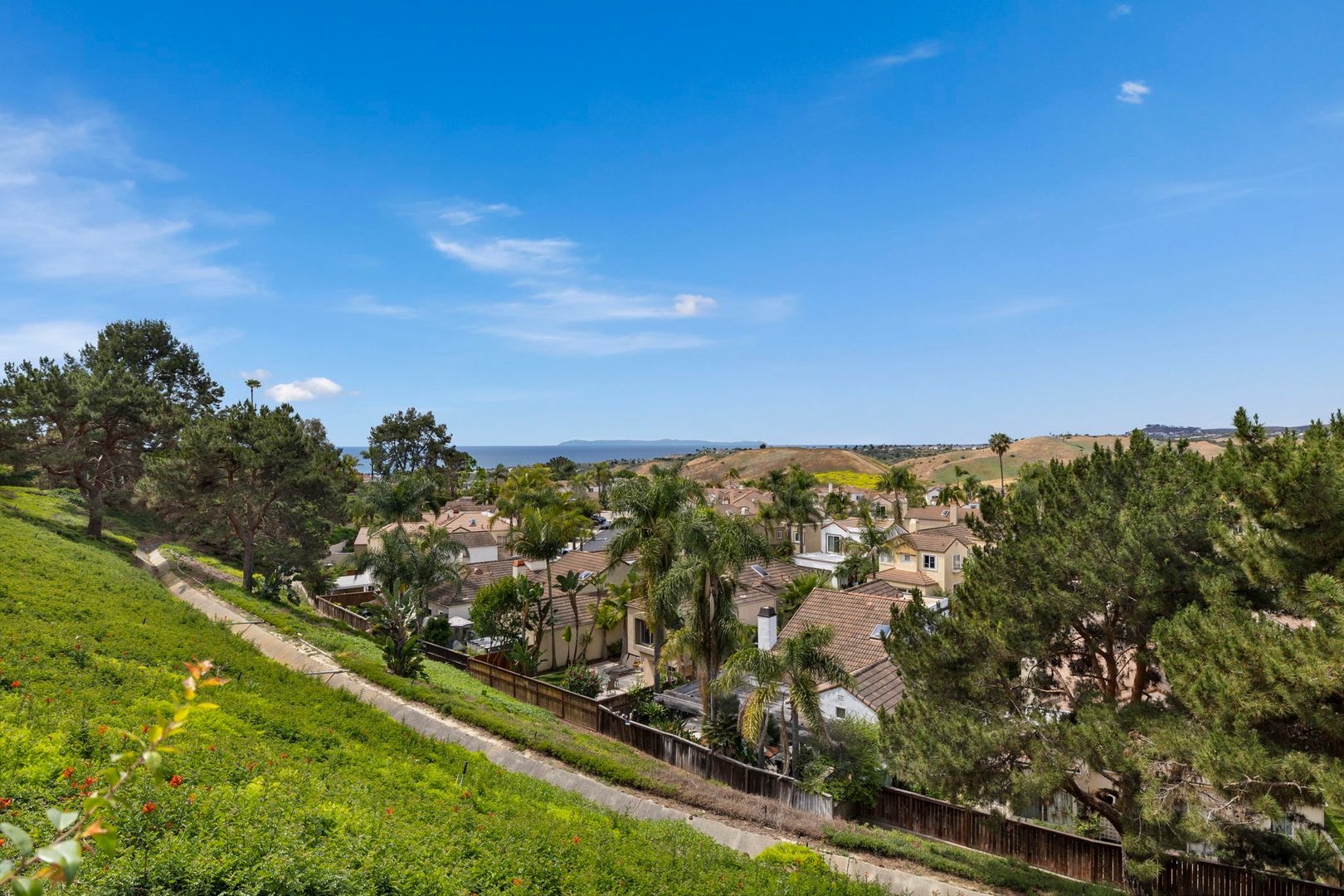 BREATHTAKING OCEAN, CATALINA & SAN CLEMENTE ISLAND VIEWS SITTING DOWN from your Living, Dining, Kitchen and Main Bedroom. SINGLE STORY END UNIT CONDO with 2 Master Suites in Prime Location offering one of the most Private and Serene locations in Vista Pacifica! Enjoy the Most Gorgeous Sunsets you ever will see over Ocean & Catalina views from this Front Row End Unit in the Quaint World Class Surf City of San Clemente. Soak up the Coastal Living and Surf Vibe in One of the best ground level locations in the community and extremely close to your Detached single car enclosed Garage with door openers and plenty of additional storage space. Mirrored Closet Doors, Large living area, Patio and Greenbelt facing the Ocean. Ceiling fan, Newer Washer, Dryer and Microwave included. Ocean View Condos in the Vista Pacifica community are rare and sell quickly. Serene surroundings include access to two fabulous pools/spas plus tranquil streams & waterfalls that create a resort-like lifestyle. On-site RV/boat parking is based on availability. Walking access to the famous ridge line trail, close to major shopping centers and great local restaurants. Very Close proximity to Lifetime Fitness, 24 Fitness, schools, surfing, Surf Contests, Beautiful Beaches, and the always Exciting downtown San Clemente with Shopping, Ocean Front Dining and Entertainment.